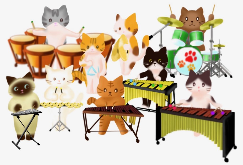 同じ楽器同士のアンサンブル、例えばサックスアンサンブル、トロンボーンアンサンブル、パーカッションアンサンブル、などもあれば、いろんな楽器が組み合わさったアンサンブルもあります。