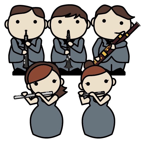 伝統的な編成である木管五重奏(フルート、オーボエ、クラリネット、ファゴット、ホルン)や、金管アンサンブル、それに打楽器が加わったものなど、それぞれに個性的な響きがあって素敵です。